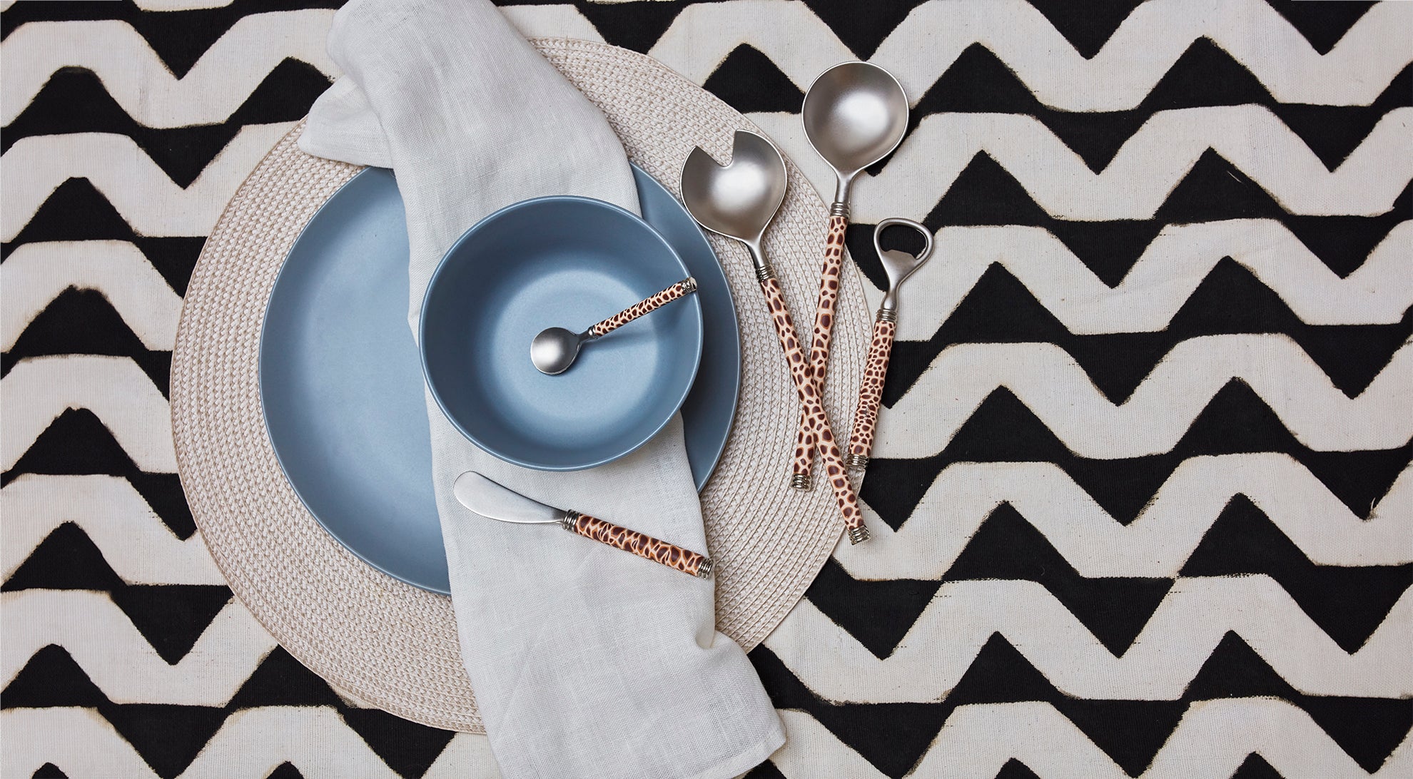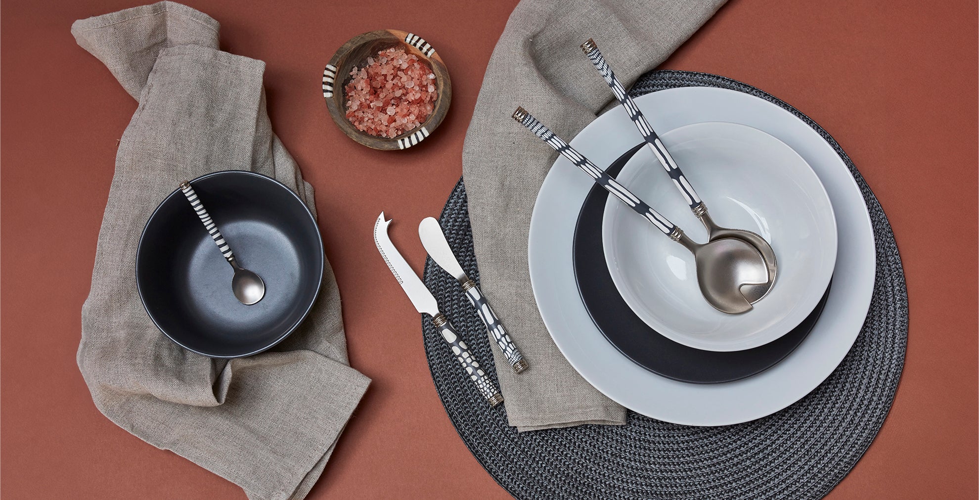Fimo clay and silver-plated salad server set in a wooden gift box