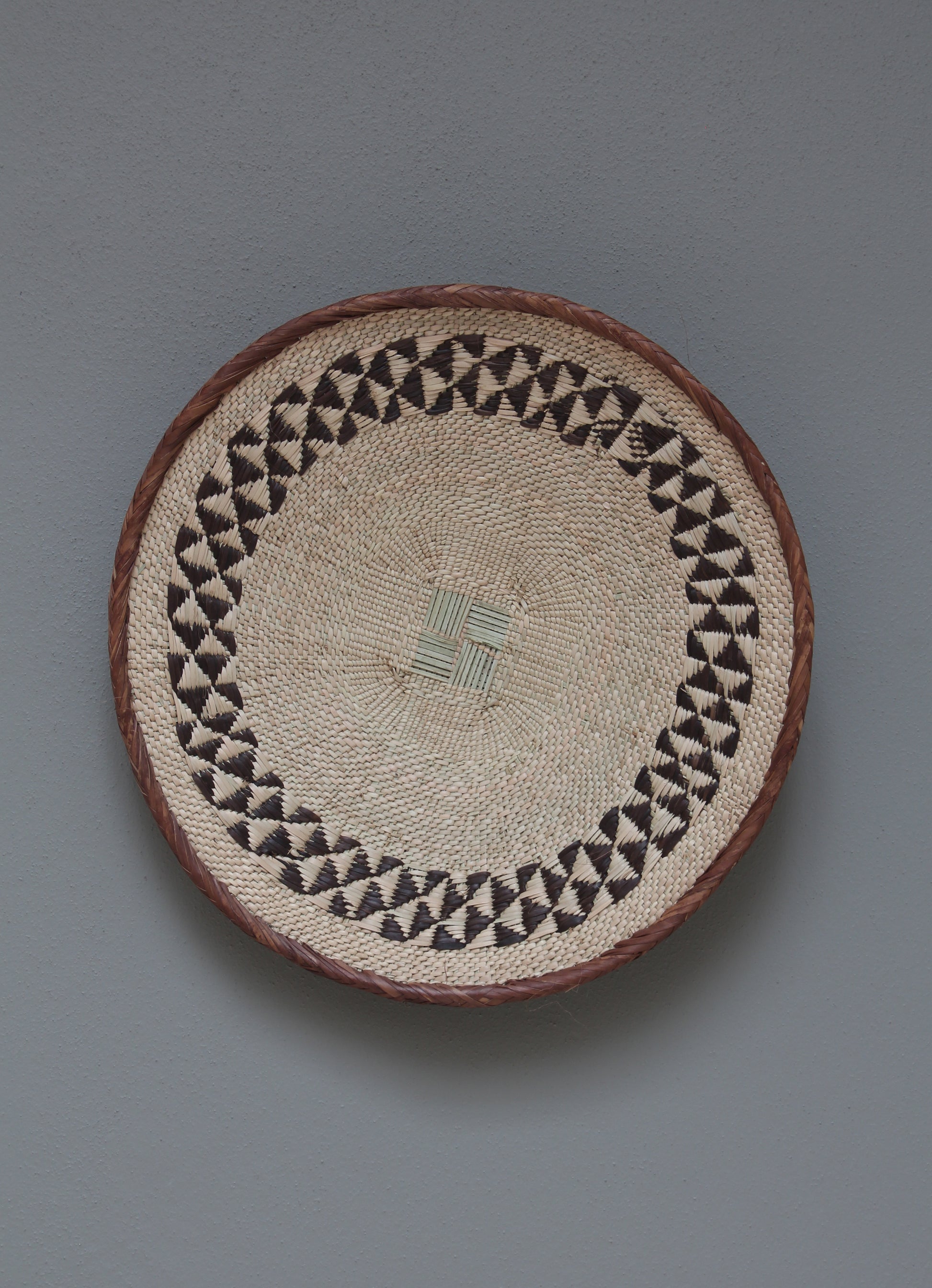 This tightly woven vine and palm leaf basket (43.5cm in diameter) is a firm favourite among Africans, used to store a multitude of things, including grains. You will find it useful in the bedroom, bathroom or dining room for holding jewellery, stones, beads or car keys… Or even group them as an eye-catching collage on the wall. Contrasting brown and yellow-cream vines are superbly woven together to create a geometric pattern with a detailed base.