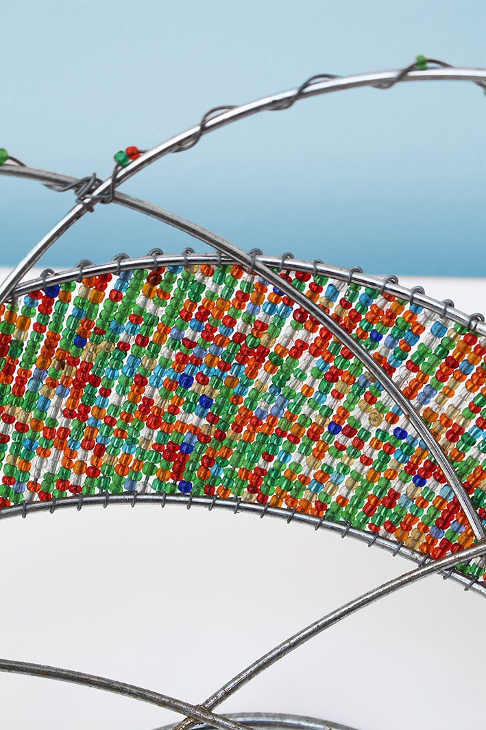 Cornelius is a Zimbabwean designer, working exquisitely with beads and wire. He creates functional art in the form of fruit bowls, lampshades, napkin rings and candle holders, as well as decorative beaded sculptures. Cornelius began working with wire from a young age, making toy cars which later improved to animals and now all objects. Inspired by his brothers, Cornelius finds joy in creating art as a way to make an honest living and provide for his family.