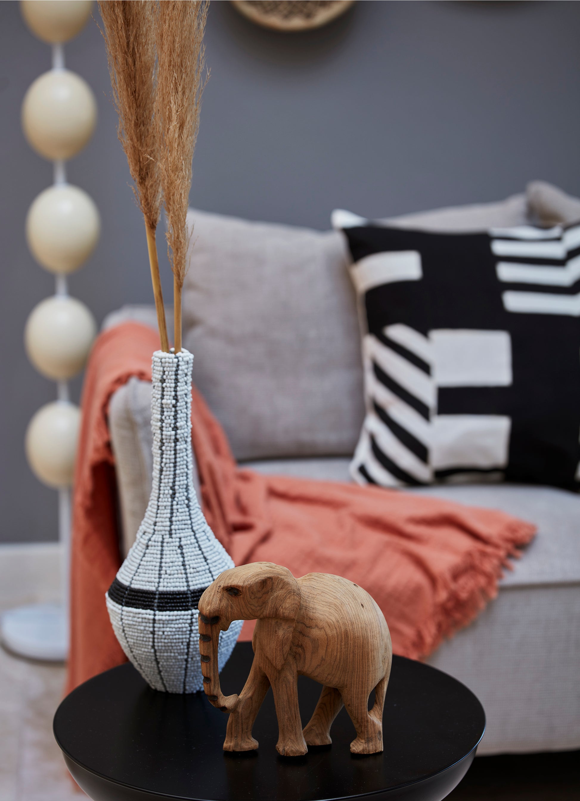 This elegant trio of decorative vases can be purchased as a set or individually. The immaculate beadwork in striking black and white patterns complements any colour scheme in the home or office. They add a stark and elegant decorating element that is sure to spark conversation, and a bit of envy...