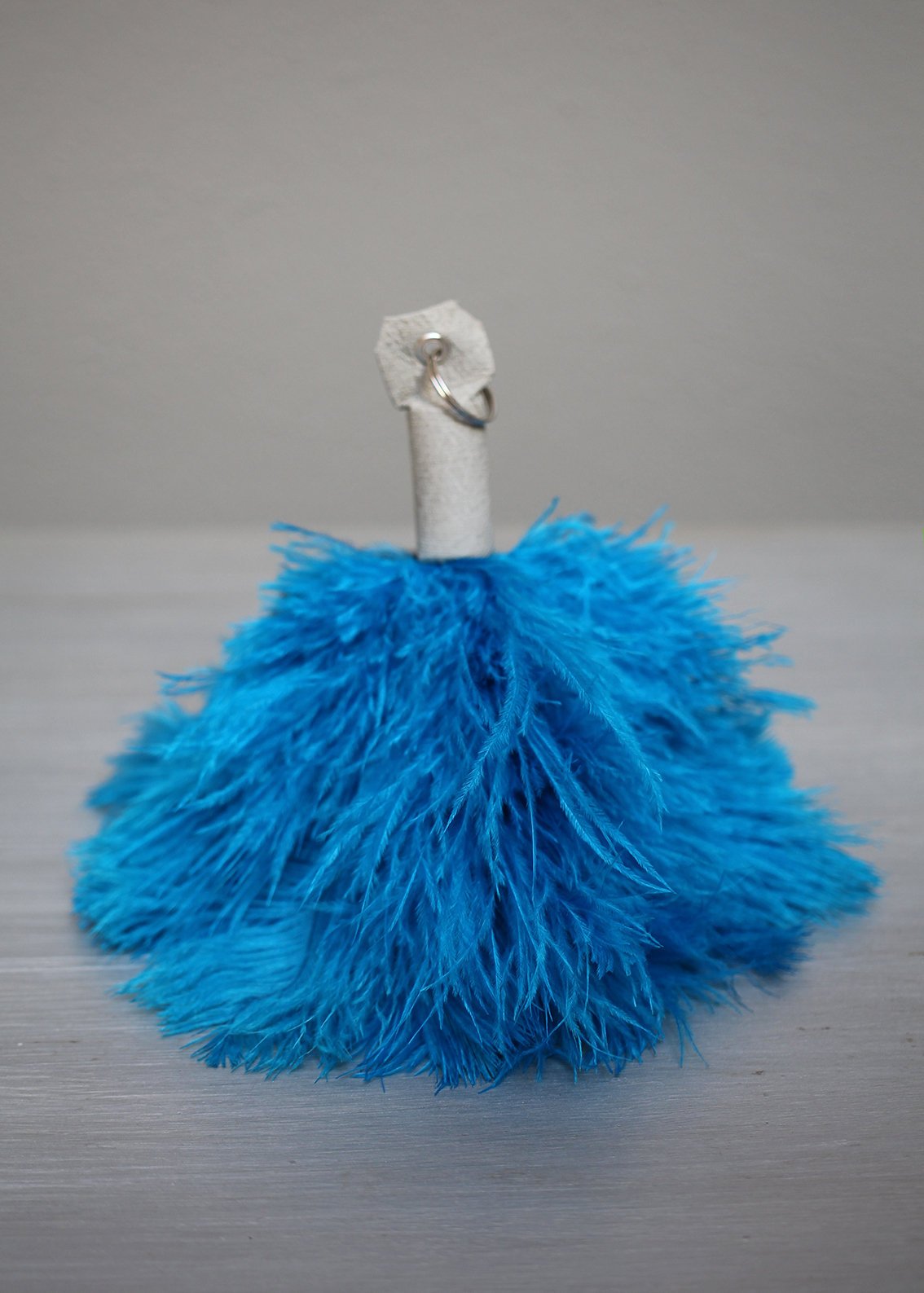 A fashion statement on its own, this vivid blue ostrich feather keyring is simply fabulous. The brightly dyed ostrich feathers are gathered into a sturdy leather base complete with silver keyring. Multi-functional the keyring feathers can also be used as a mini feather duster for your computer keyboard. You will be the talk of the town with this unique piece.