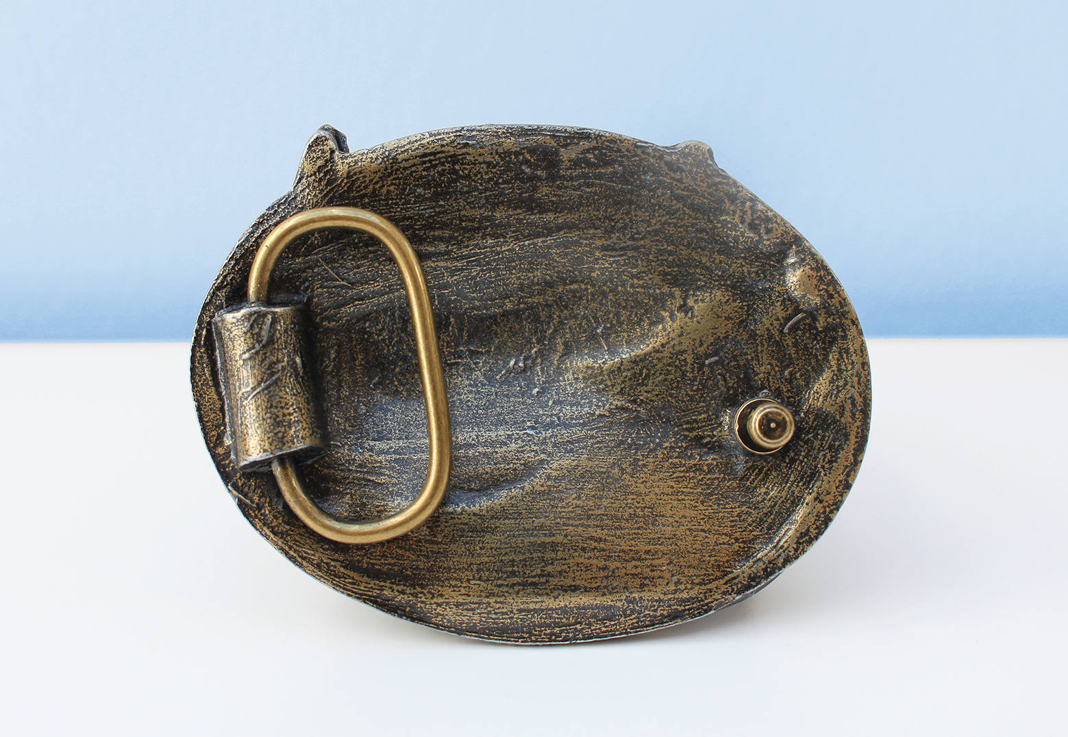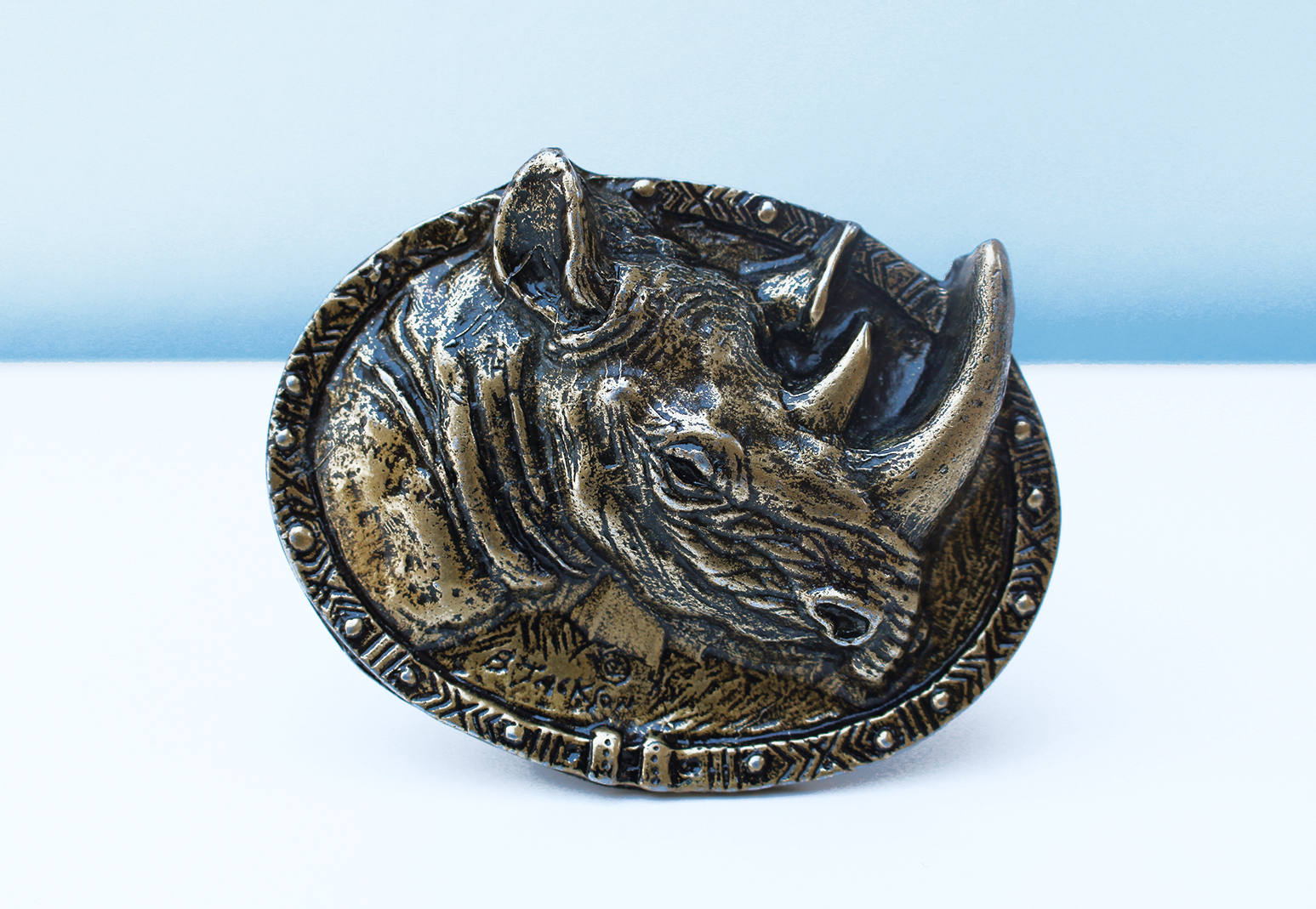 The majestic African rhino is depicted on these solid brass belt buckles, its head in relief and looking straight out. A striking gift for a man and sturdily constructed, this is a sure-fire choice of present.