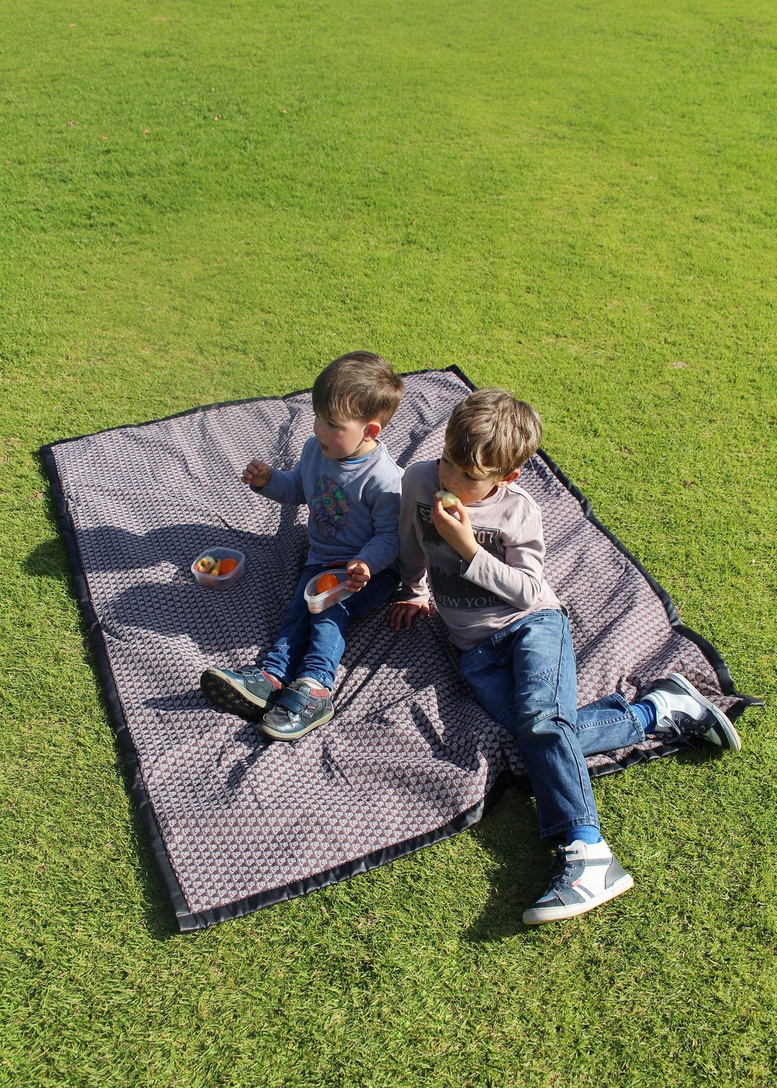 This African picnic blanket is fun and full of personality. Made of Shwe-shwe fabric with a black waterproof underside, each blanket is filled with batting making it really comfortable to sit on. The blanket includes a velcro strap to keep it closed and handles so it's easy to carry. The dimensions are 2m x 1.5m