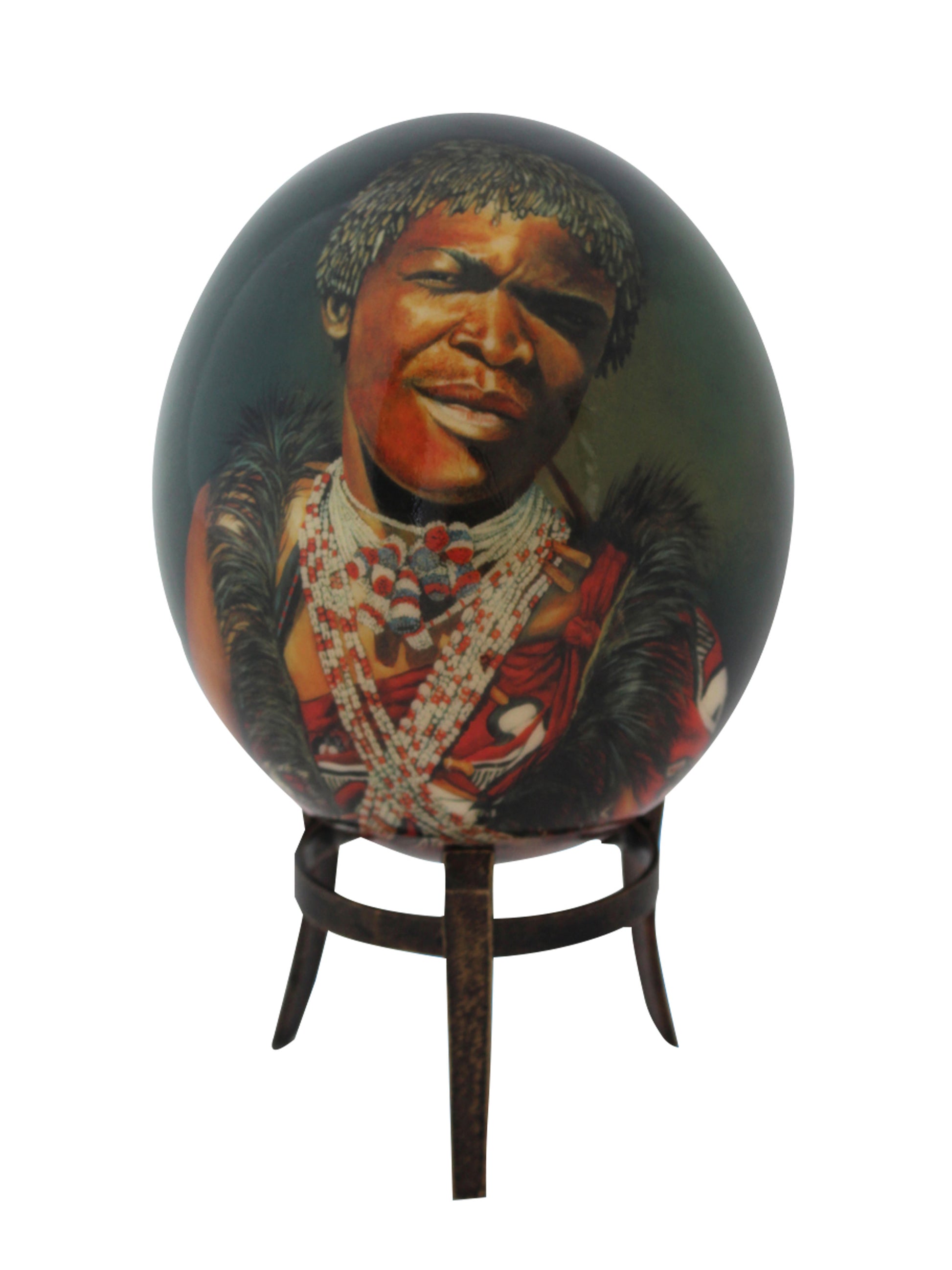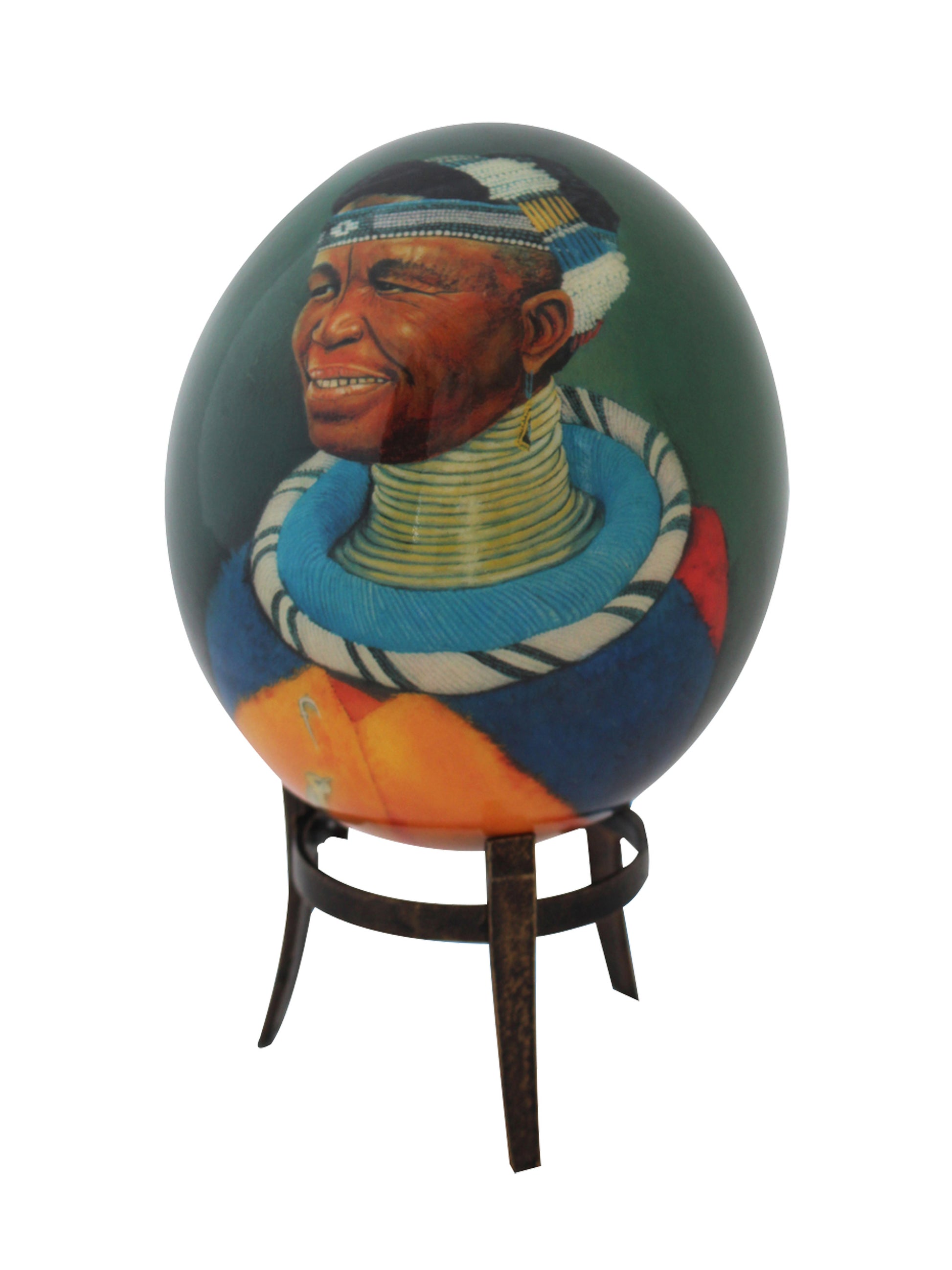 So explicitly and sublimely African, these unique ostrich eggshell art pieces gleam with the colour and rich textures of Africa. A detailed image is depicted on each side of the egg ā both African men in traditional dress and boasting the jewellery native to the region. One with brass rings around the neck and the other wearing intricate beadwork. A perfect present for a man of superior taste, these unique eggs add a sense of mystery to any home or office. They are placed securely on brass stands.
