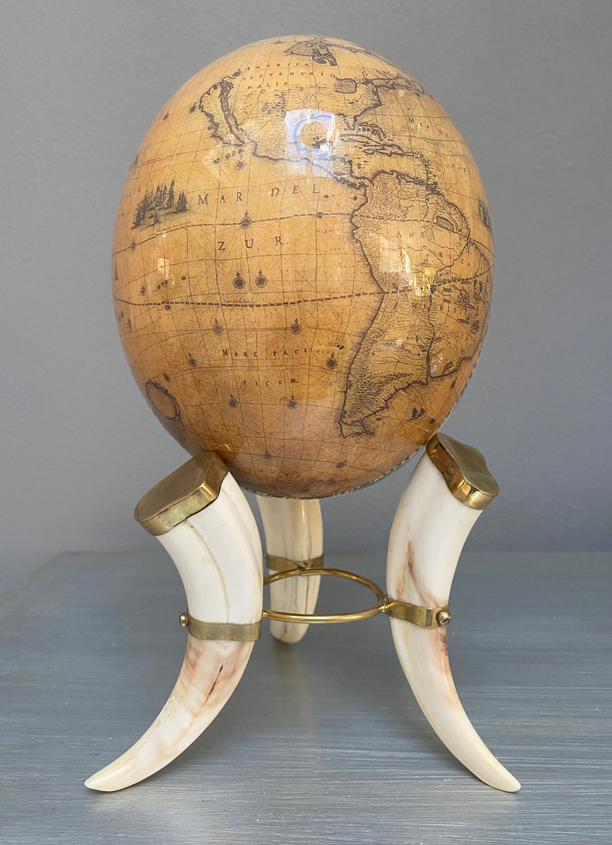 The Decoupage World Map is a simply stunning piece of art combining the natural texture and characteristic shape of an ostrich eggshell with a carefully etched and exceptionally detailed map of the world. Set on a circular wooden base or elegant brass stand, this piece makes for an outstanding gift, although one might find it difficult to give away! This sophisticated piece would not be out of place in an executive boardroom or office.