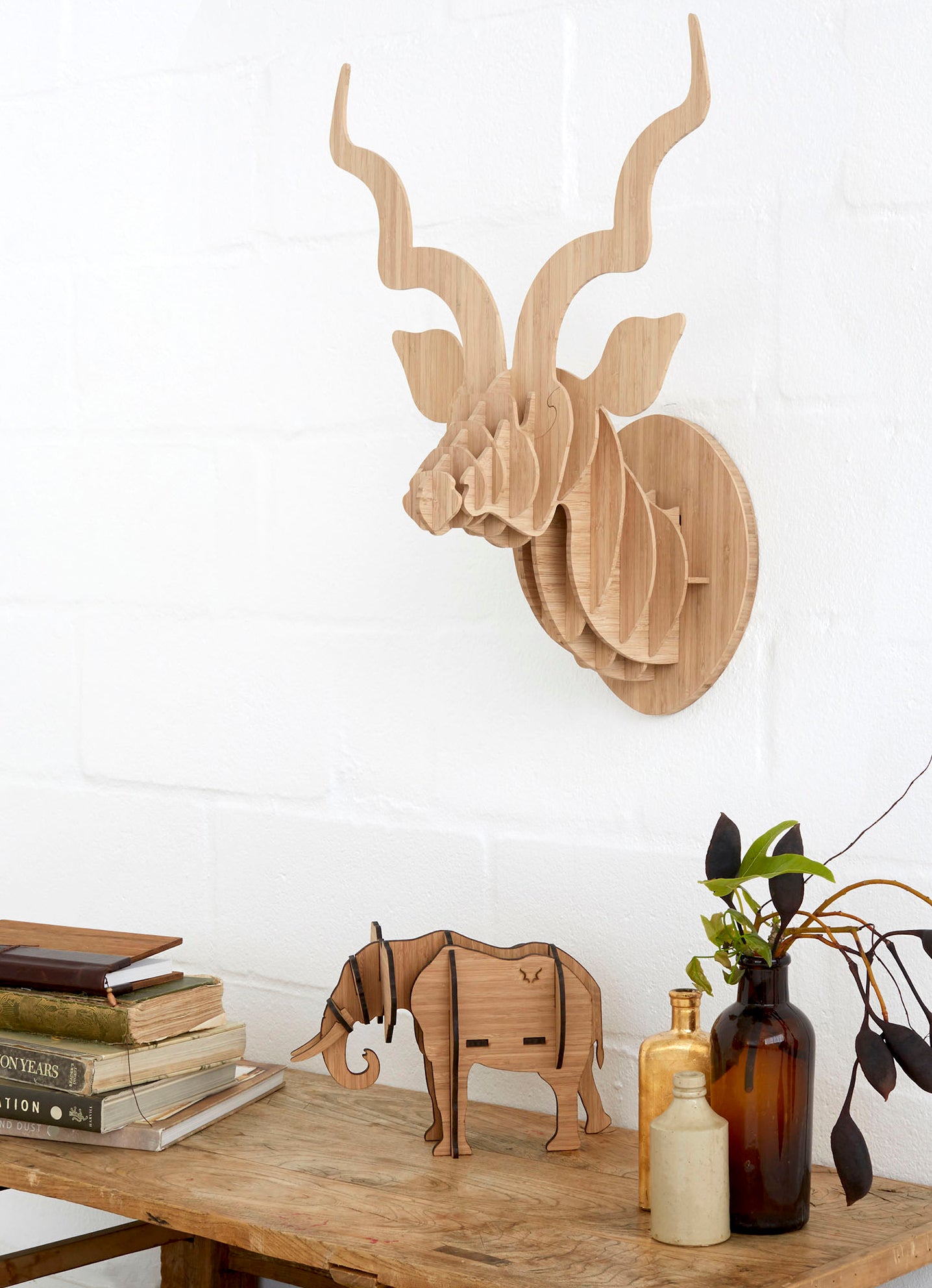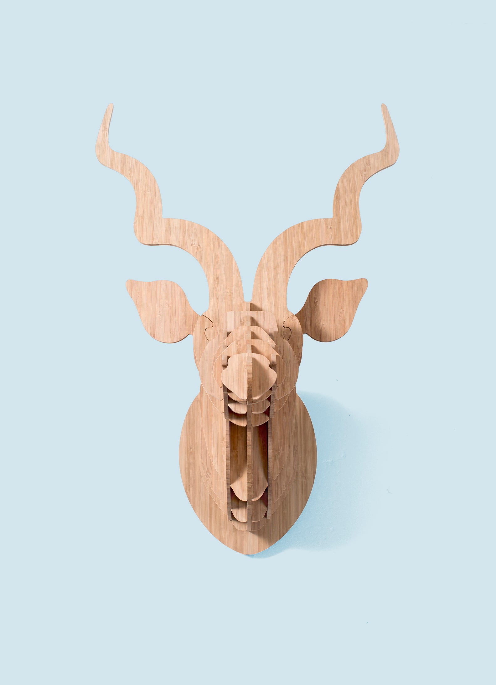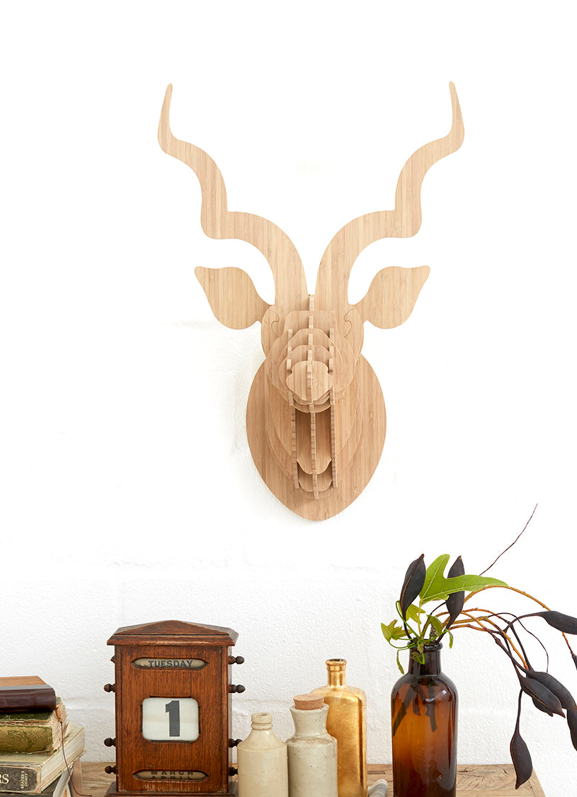 This elegant, wall mounted kudu sculpture is perfect for any interior space and easy to assemble. The sculpture is available in bamboo, nature's new wonder plant. It comes flat-packed with clear instructions on how to assemble and hang. No glue required - all you need is a nail in the wall.