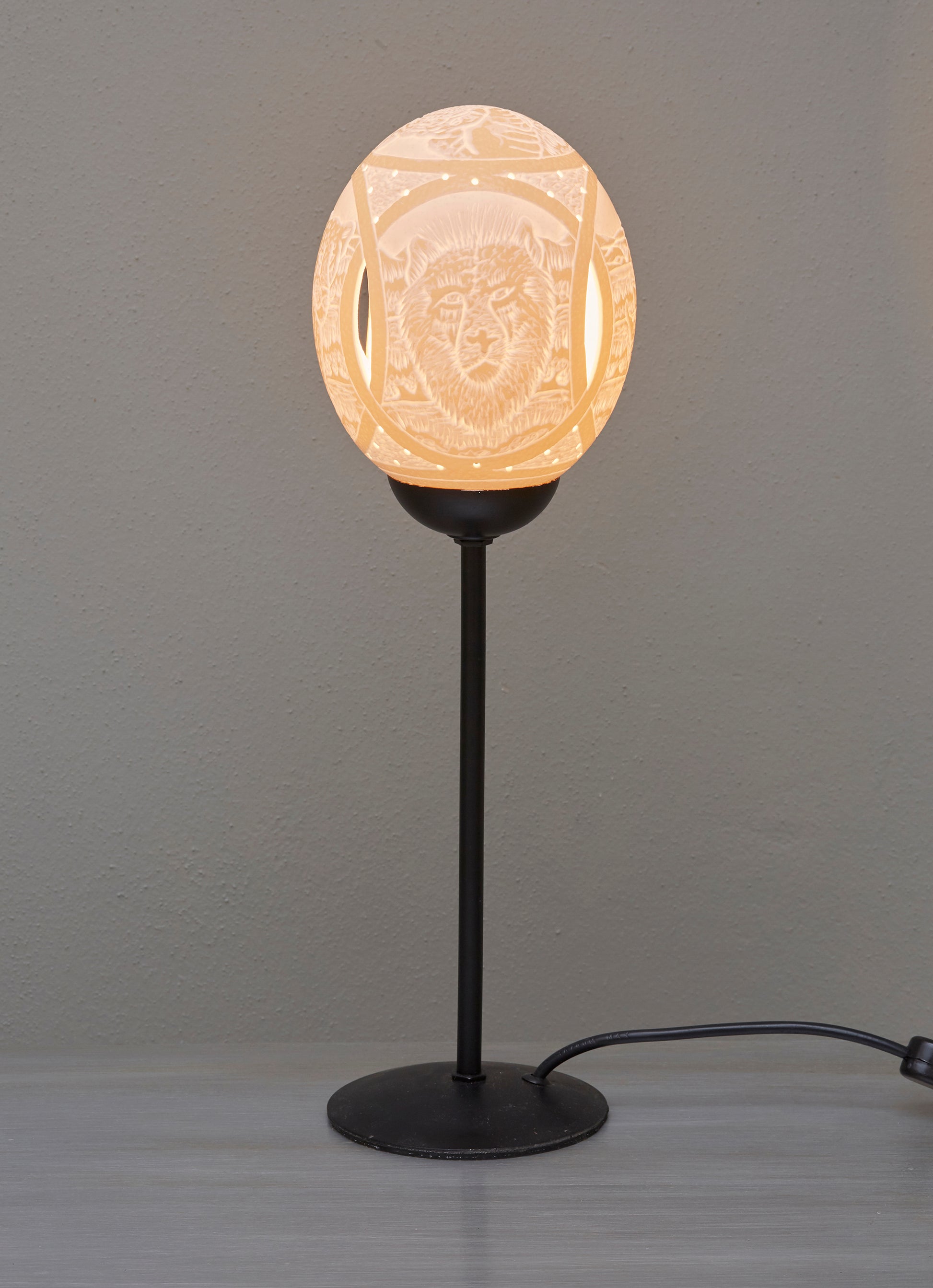 Customise the look of your stunning ostrich eggshell lamp by selecting the height of the base. The range of bases are made from mild steel and stand at 0mm, 120mm, 180mm and 230mm. The bulbĀ and 2-prong plug are included; an adaptor is included for United States-based clients.Ā Please note this listing does not include an egg.