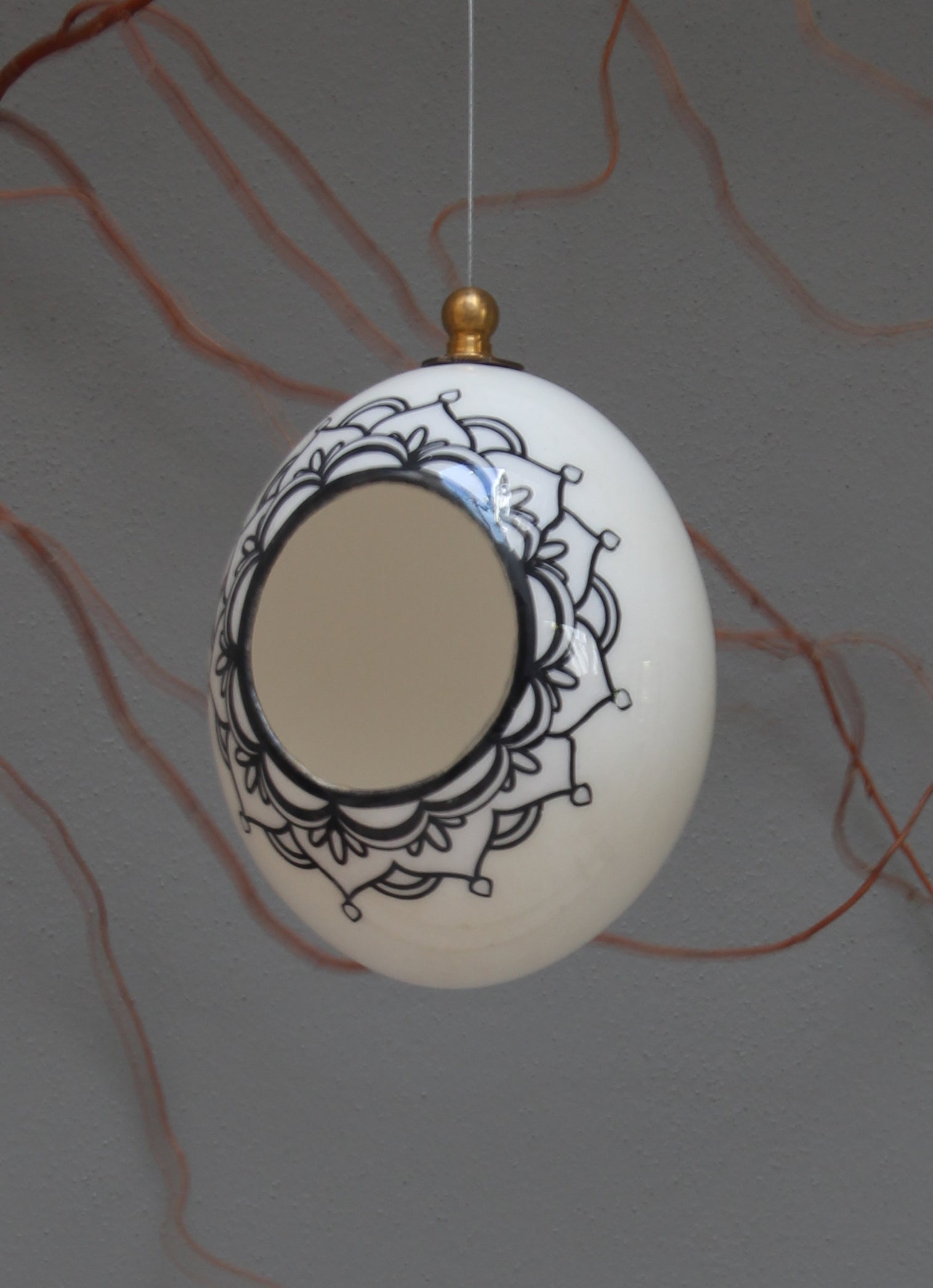 The geometrical black and white etchings on this ostrich eggshell birdfeeder capture the essence of nature’s beauty. These iconic pieces are a great addition to any garden and a sure-fire conversation starter.Â