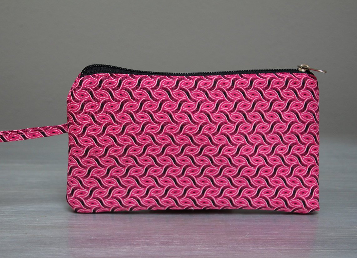 This gorgeous African Shwe-shwe purse, shocking pink and black geometric detail is designed, printed and handmade locally in South Africa. It is approximately 22cm W x 13cm H and closes with a zip.