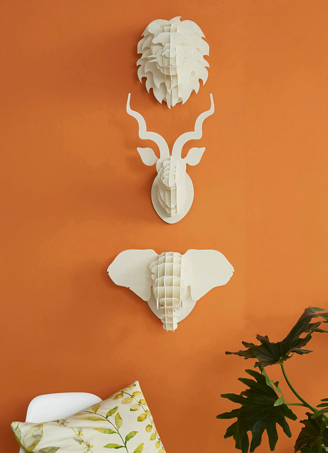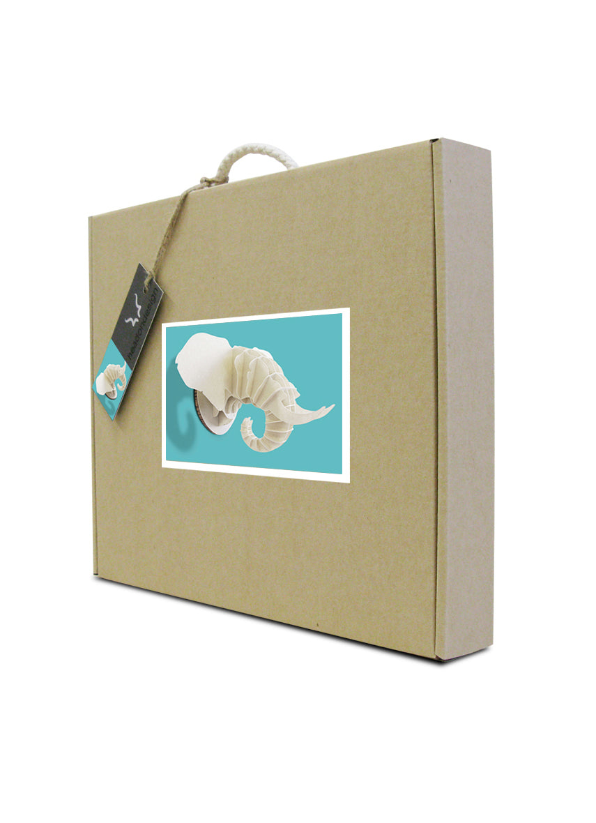 Small Elephant head in Paperboard. Made from recycled paper, this majestic wall-mounted African elephant animal head is a great gift for all ages, from 6 years (with adult supervision during assembly) to adult. No glue required.