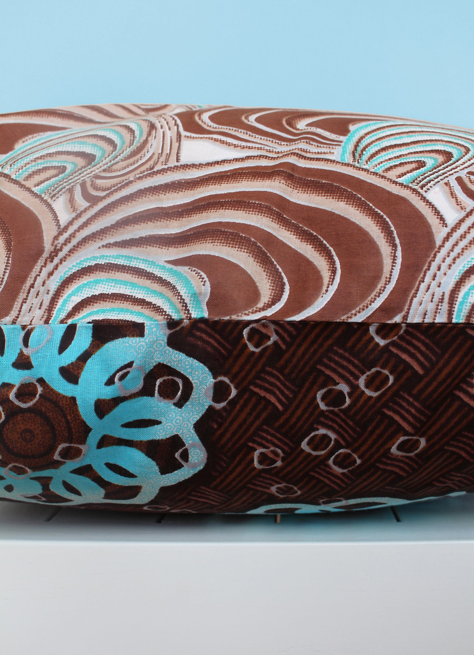 Turquoise and brown Java African wax print scatter cushion 50 x 50cm: add a splash of colour to your home with this unique mixed print Java cushion.